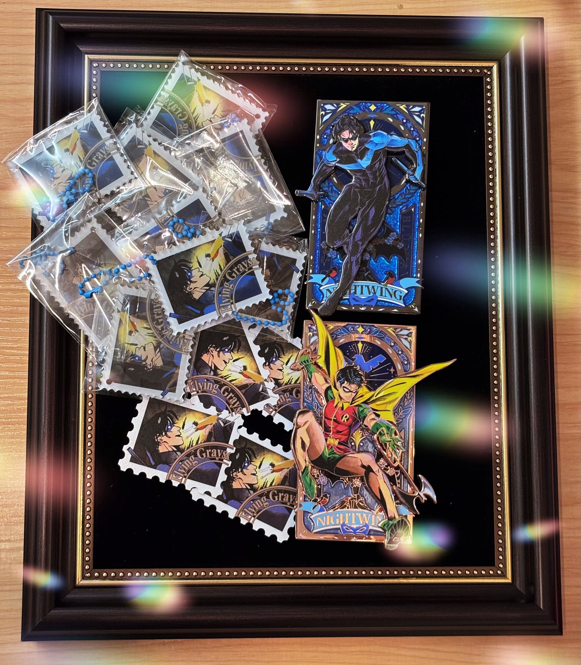 Nightwing in BN, panel background in Opal glitter effect